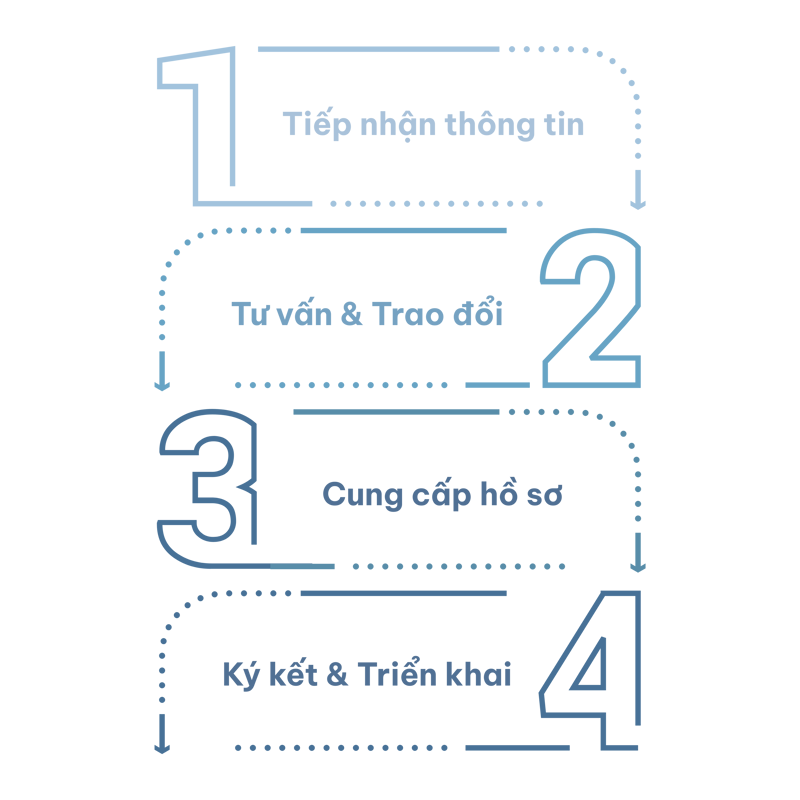 Đội ngũ chuyên viên của chúng tôi tiếp nhận yêu cầu hợp tác qua Hotline, Email hoặc Form đăng ký. Chúng tôi sẽ liên hệ trong vòng 24h để xác nhận và tìm hiểu sơ bộ về nhu cầu của Quý đối tác.