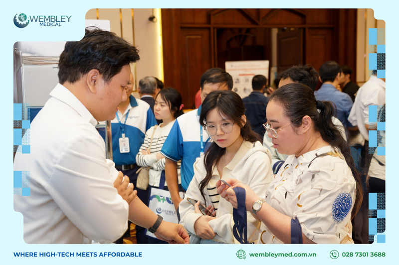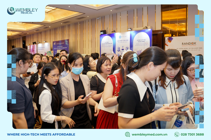 Gian hàng WEMBLEY MEDICAL nhanh chóng trở thành tâm điểm chú ý khi đón tiếp hơn 500 lượt khách tham quan. Tại đây, đội ngũ chuyên gia của chúng tôi đã trực tiếp chia sẻ về hệ sinh thái giải pháp giúp tối ưu hóa vận hành và kiểm soát sai số tiền phân tích, nổi bật với các dòng sản phẩm chủ lực: Ống nghiệm lấy máu chân không VATRACY, Ống nghiệm Lấy máu Chân không Bảo quản DNA/RNA ngoại bào VATRACY và dòng Ống Nghiệm Lấy Máu URI. Bên cạnh đó, WEMBLEY MEDICAL còn mang đến nhiều danh mục vật tư y khoa công nghệ cao khác, góp phần nâng cao chất lượng chăm sóc và điều trị tại các cơ sở y tế.