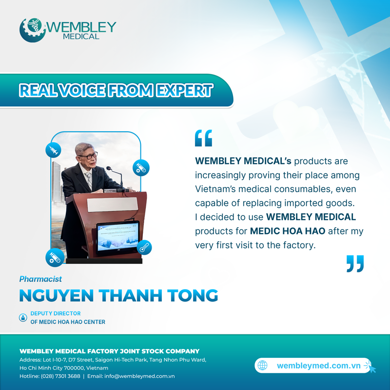 "WEMBLEY MEDICAL’s products are increasingly proving their place among Vietnam’s medical consumables, even capable of replacing imported goods. I decided to use WEMBLEY MEDICAL products for Medic Hoa Hao after my very first visit to the factory."
