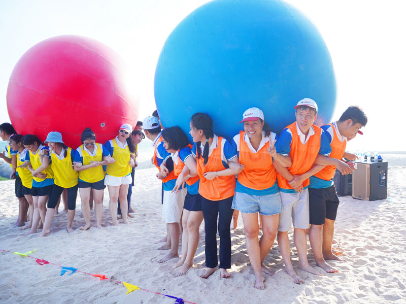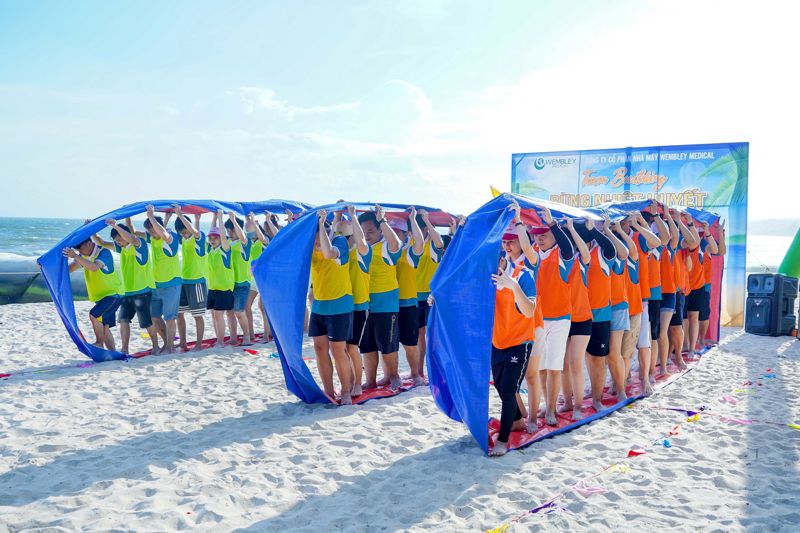 In the afternoon, we checked into our hotel as scheduled. Contrary to expectations that people might rest to recover, everyone excitedly gathered and fully engaged in the physical activities planned. It was truly impressive to see the enthusiastic participation in the team-building games on the sunny, windy, and sandy beaches of Phan Thiet.