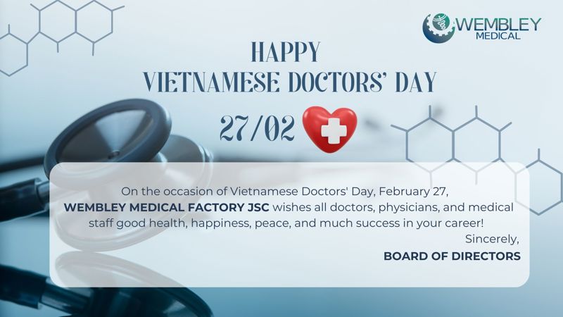 On the occasion of Vietnamese Doctors' Day, February 27th, the Board of Directors, on behalf of the entire WEMBLEY MEDICAL team, extends heartfelt wishes to all healthcare professionals. May you always be filled with energy, enjoy good health and peace, and continue to make significant contributions to patient care.