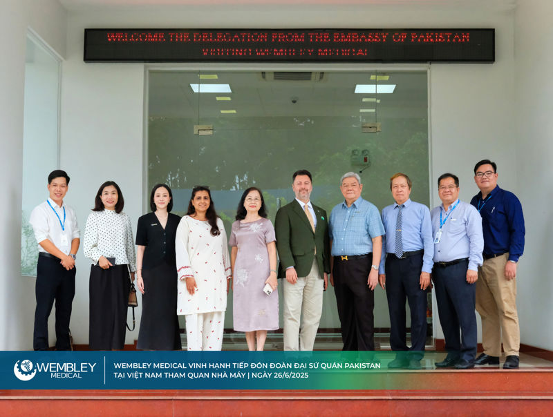 On June 26, 2025, WEMBLEY MEDICAL had the honor of welcoming the delegation from the Embassy of Pakistan in Vietnam for a visit and working session at the factory.