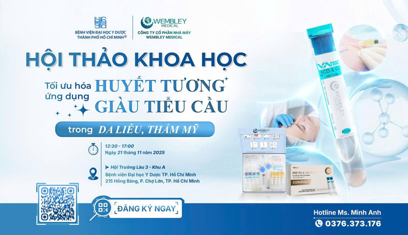 Tất cả sẽ được giải đáp trong Hội thảo khoa học: TỐI ƯU HÓA ỨNG DỤNG PRP TRONG DA LIỄU THẨM MỸ, do WEMBLEY MEDICAL phối hợp cùng Bệnh viện Đại học Y Dược TP. Hồ Chí Minh tổ chức.