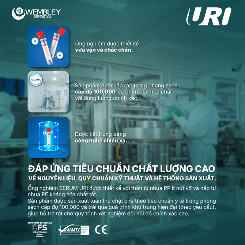 Với những yêu cầu nghiêm ngặt về kỹ thuật xét nghiệm trong chẩn đoán bệnh, ống nghiệm lấy máu SERUM URI được thiết kế và sản xuất theo tiêu chuẩn chặt chẽ nhằm hỗ trợ tốt cho quy trình xét nghiệm đòi hỏi độ chính xác cao.